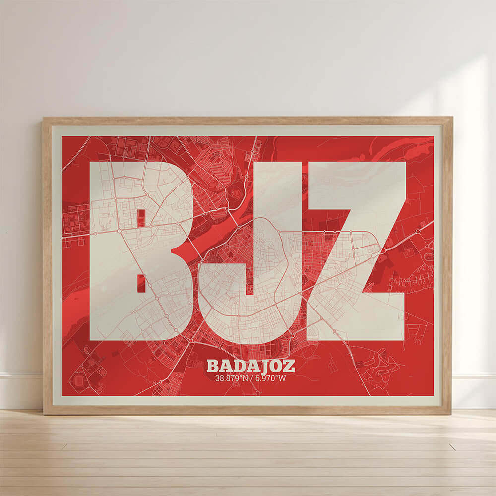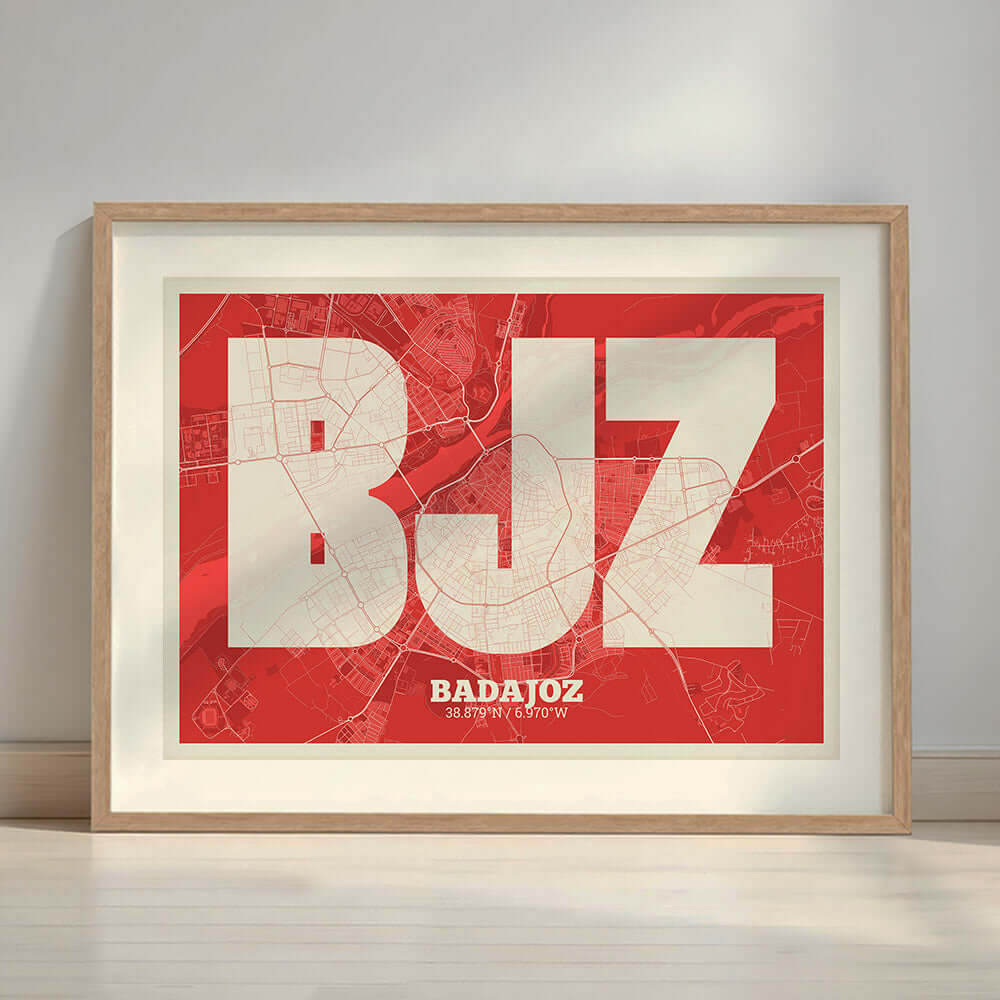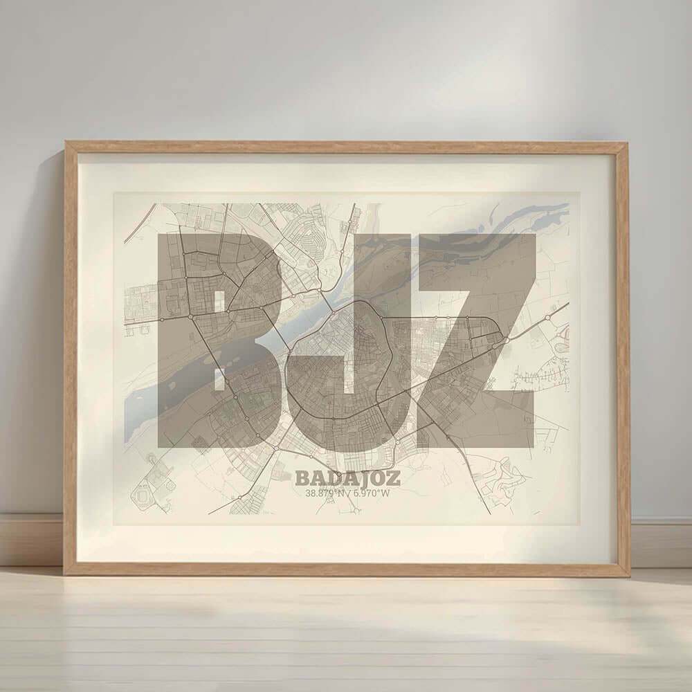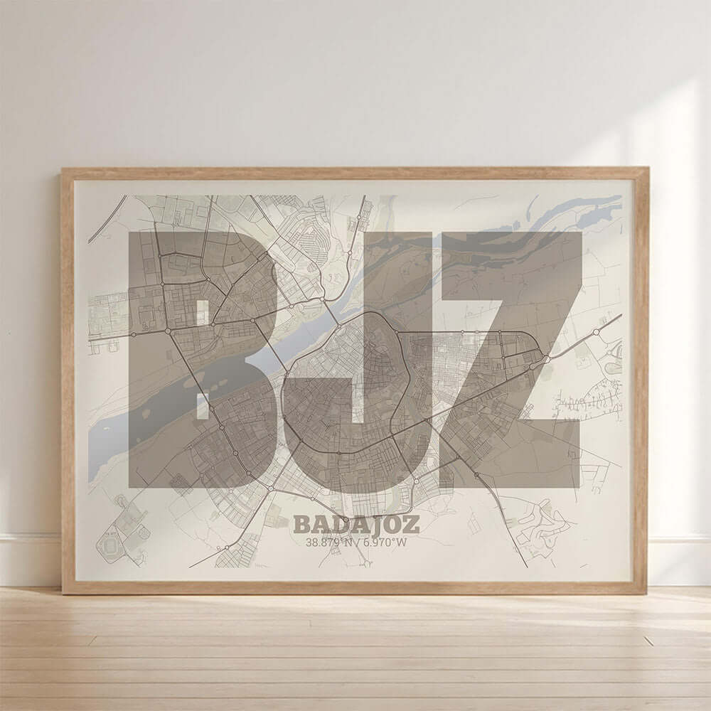 If you love maps and cartography, these prints with our design v02 are a must-have for your collection. Each frame features a detailed street map of Badajoz If you love maps and cartography, these prints with our design v02 are a must-have for your collection. Each frame features a detailed street map of Badajoz in its purest form, with a minimalist, distraction-free design. As a distinctive touch, an initial superimposed on the map stands out, creating a perfect balance between art and geography.