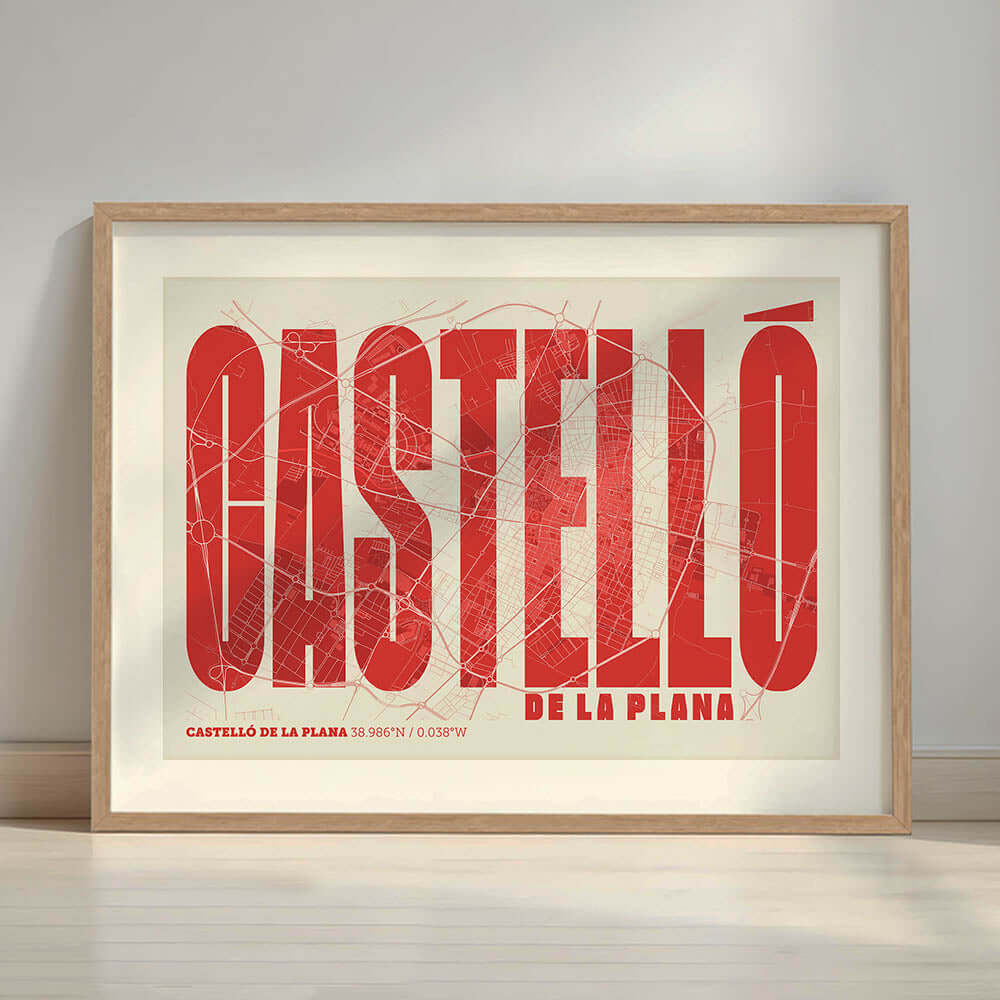 Have this decorative poster for your living room and let its essence, reflected in its typography and architecture, inspire your day to day. Consider it as a renewed souvenir of Castellon or an original gift, perfect for lovers of typographic posters.
