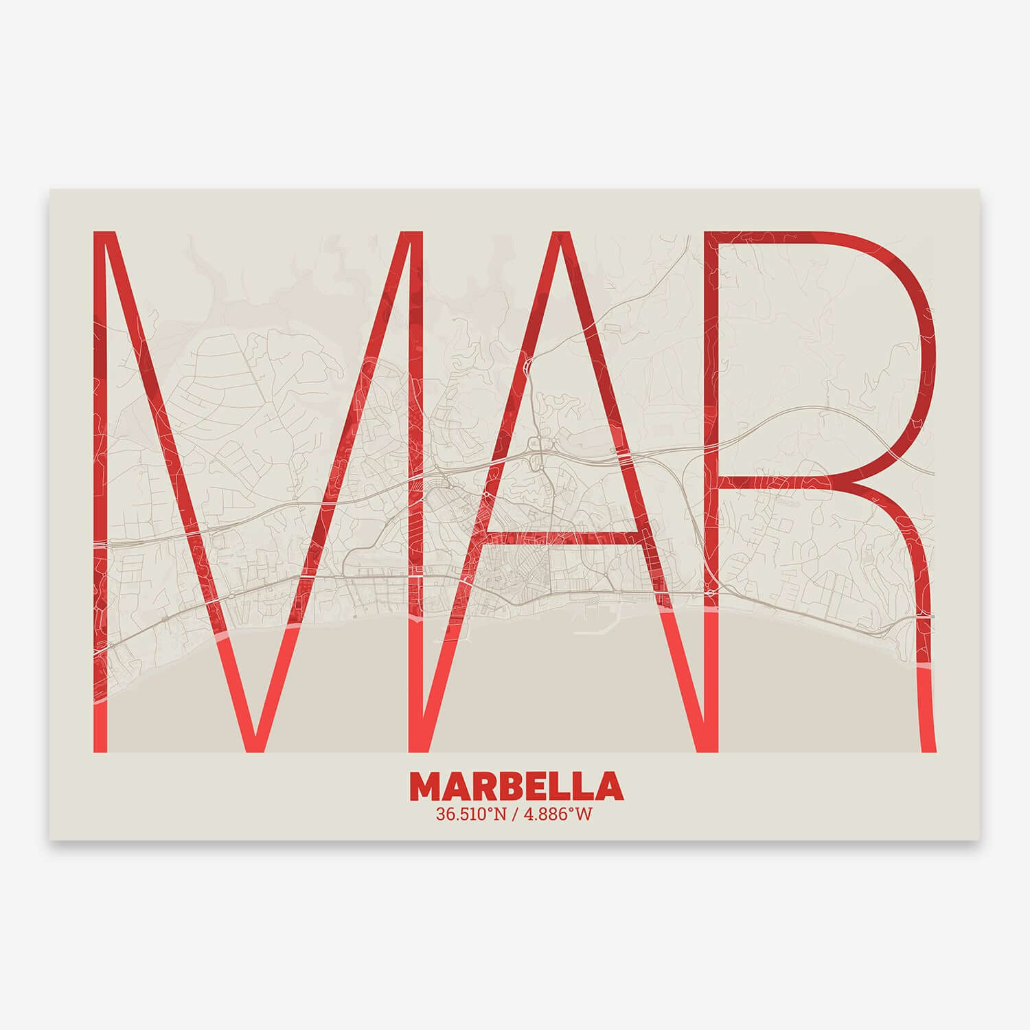 A graphic design of Marbella with clean, light lines and ultra-thin typography that conveys lightness and sophistication.
